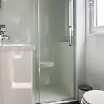 Die 2 Bedroom Nice Stacaravan In Julianadorp verfügt über ein Badezimmer mit einer Dusche. Ein Haartrockner gehören auch zu den Badezimmern.